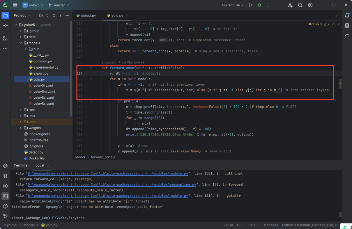 所谓智能,就是能够识别垃圾类别,放到对应的垃圾桶里面。核心是目标检测算法,这里采用的是yolov5。接下来讲一下配置环境后,运行yolov5测试所遇到的报错,帮助大家避雷。