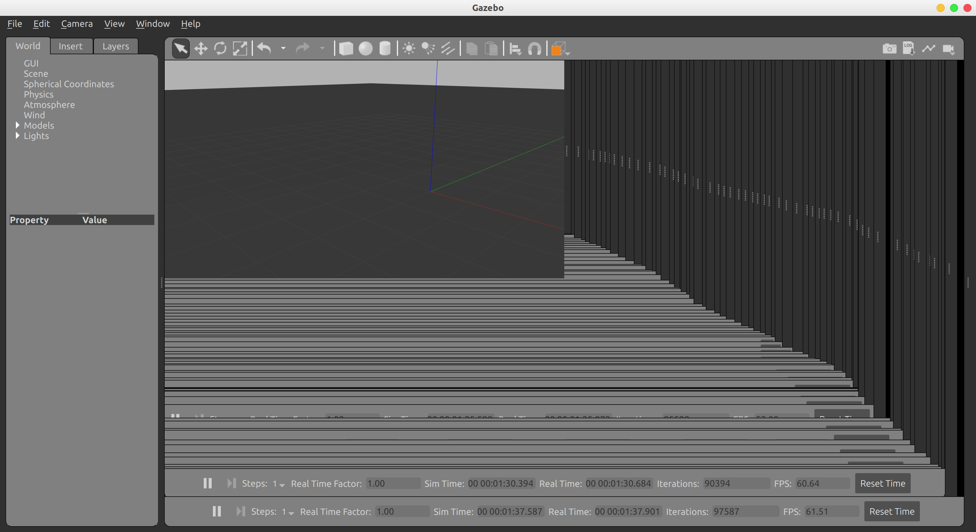 在一个风和日丽的下午,我照常打开Gazebo进行仿真,却发现Scene界面无法铺满屏幕,且只显示在左上角,并没有完全铺满,其余部分都是后面的页面(之前打开的东西,说不清楚,请看图)