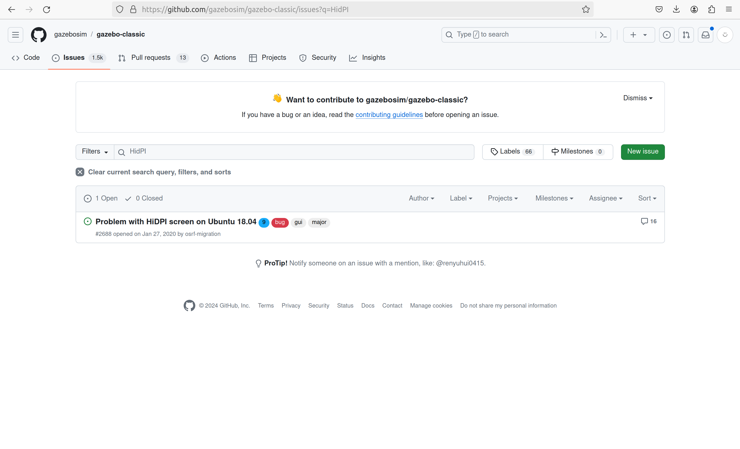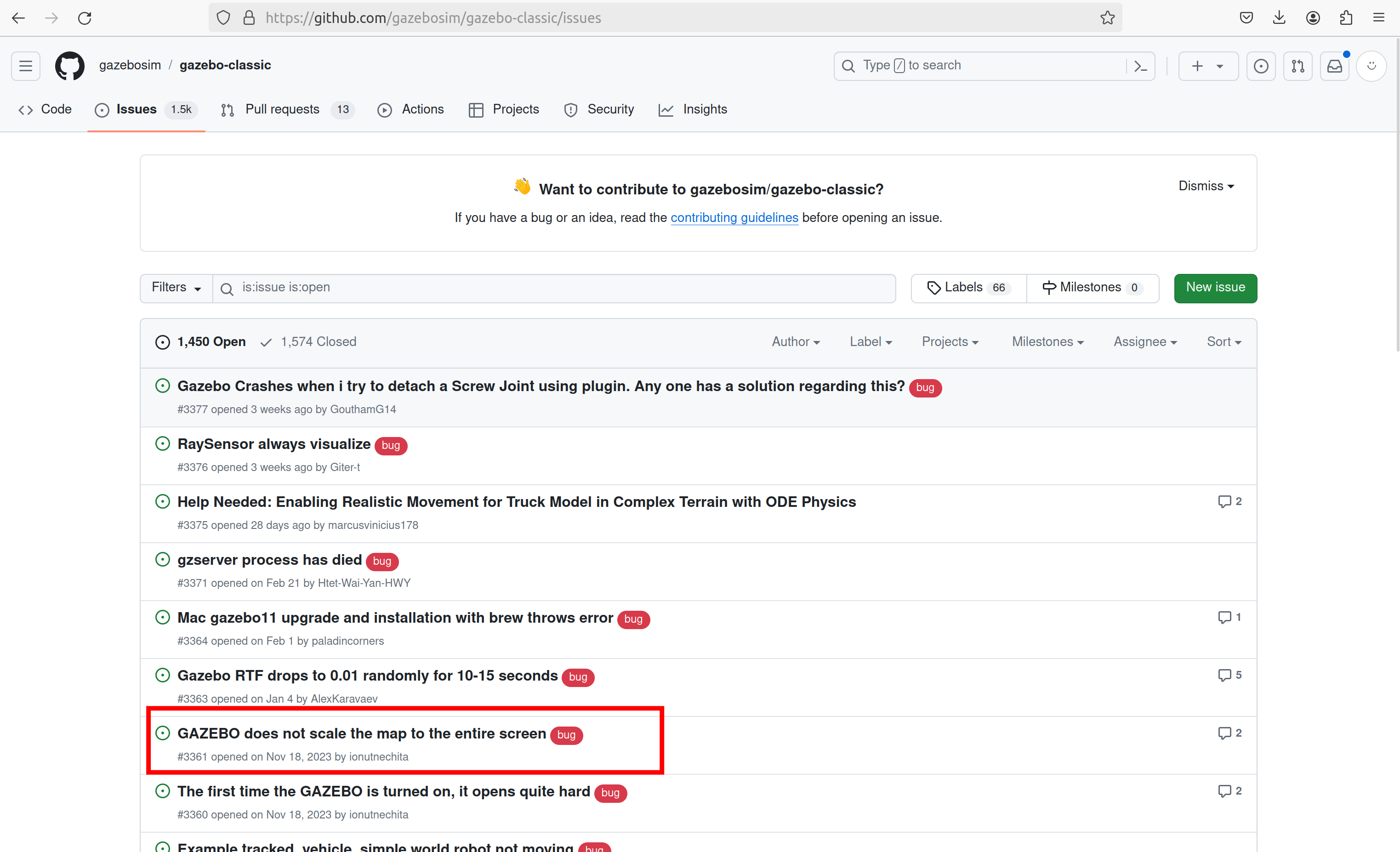 先找到Gazebo的仓库 Gazebo 仓库,点击Issues