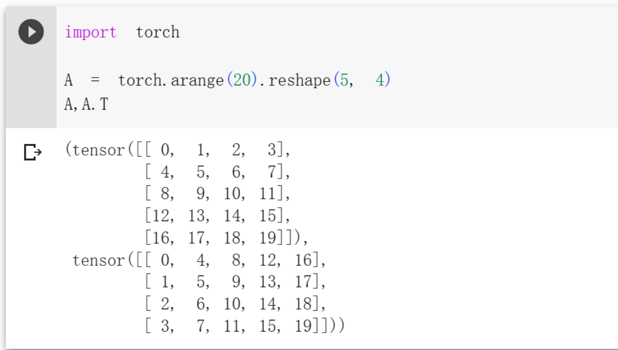 当我们交换矩阵的行和列时,结果称为矩阵的转置(transpose)。 通常用