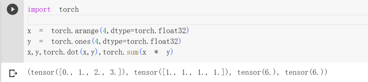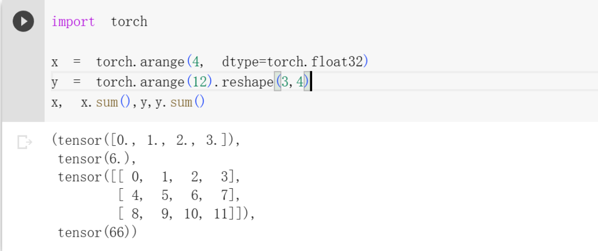 我们可以对任意张量进行的一个有用的操作是计算其元素的和。使用sum函数即可,对应向量量(长度为d)的求和用数学表示就是