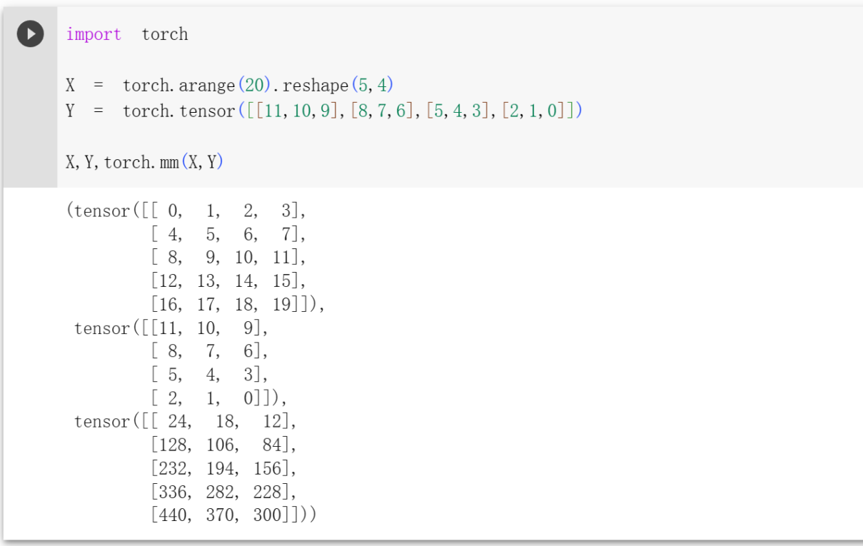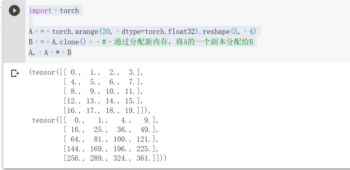 给定具有相同形状的任意两个张量,任何按元素二元运算的结果都将是相同形状的张量。 例如两个矩阵相加