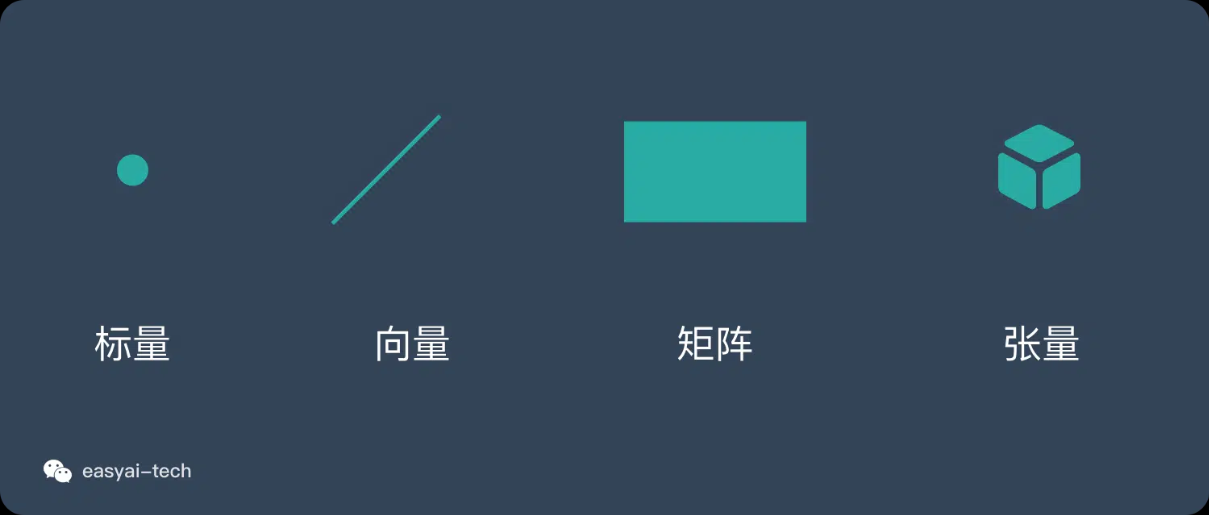就像向量是标量的推广,矩阵是向量的推广一样,张量 是描述具有任意数量轴的维数组的通用方法,目的是把向量、矩阵推向更高的维度。例如,向量是一阶张量,矩阵是二阶张量。