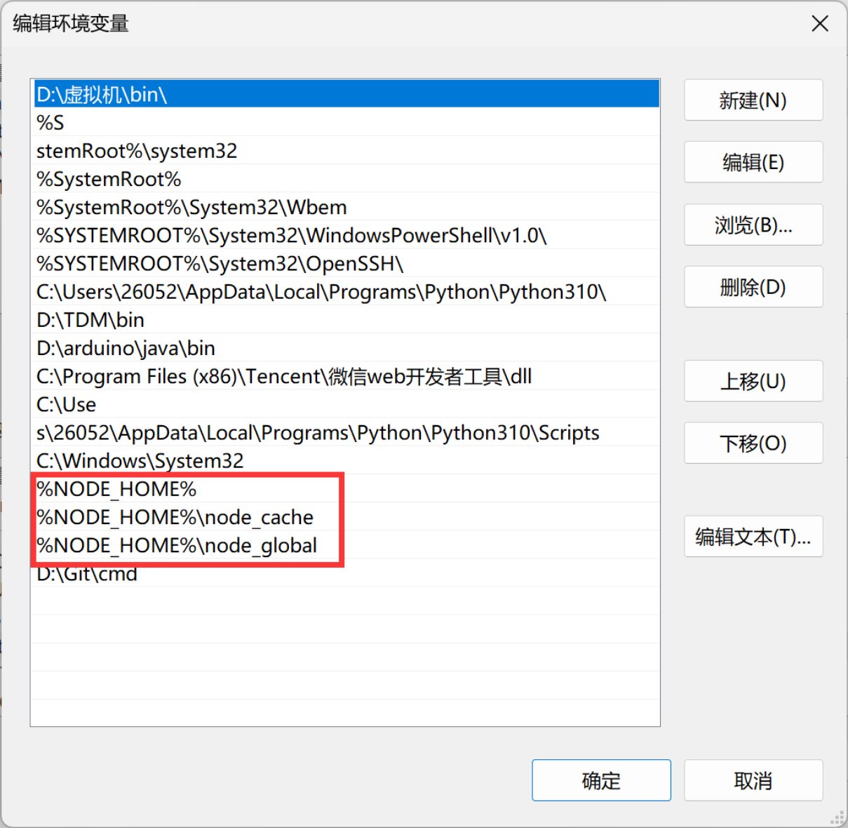 npm config set cache "D:\nodejs\node_cache"添加环境变量