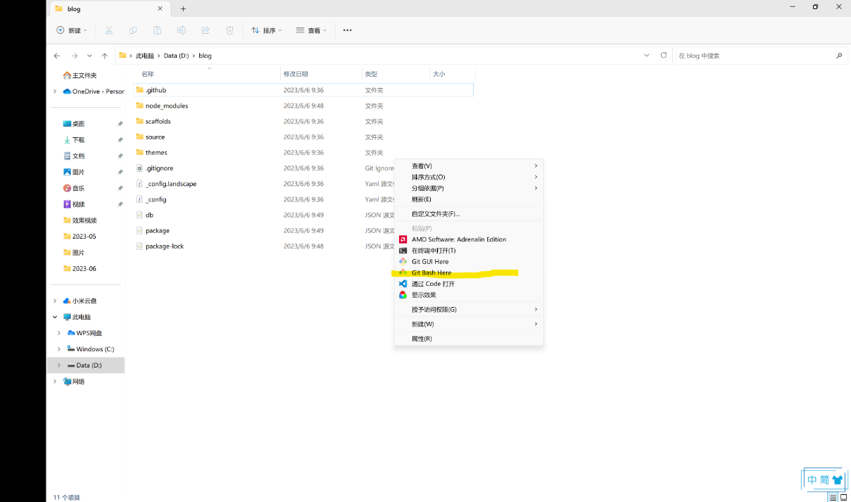 在blog文件夹 右键 -> 显示更多选项 -> git bash