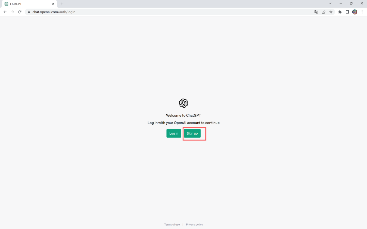 接下来进入 ChatGPT官网,点击Sign up进行注册。