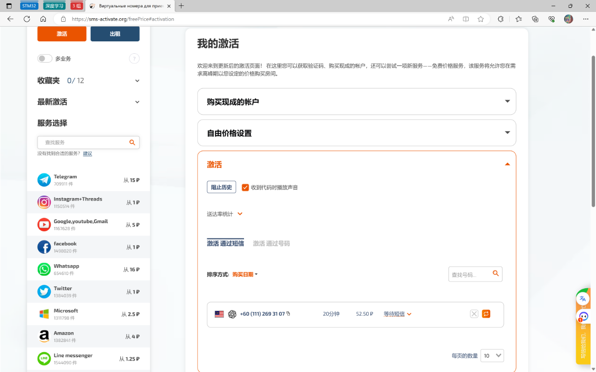 返回原来的页面,即可看到验证码,如果不行可以在sms平台换一个手机号或者取消激活。