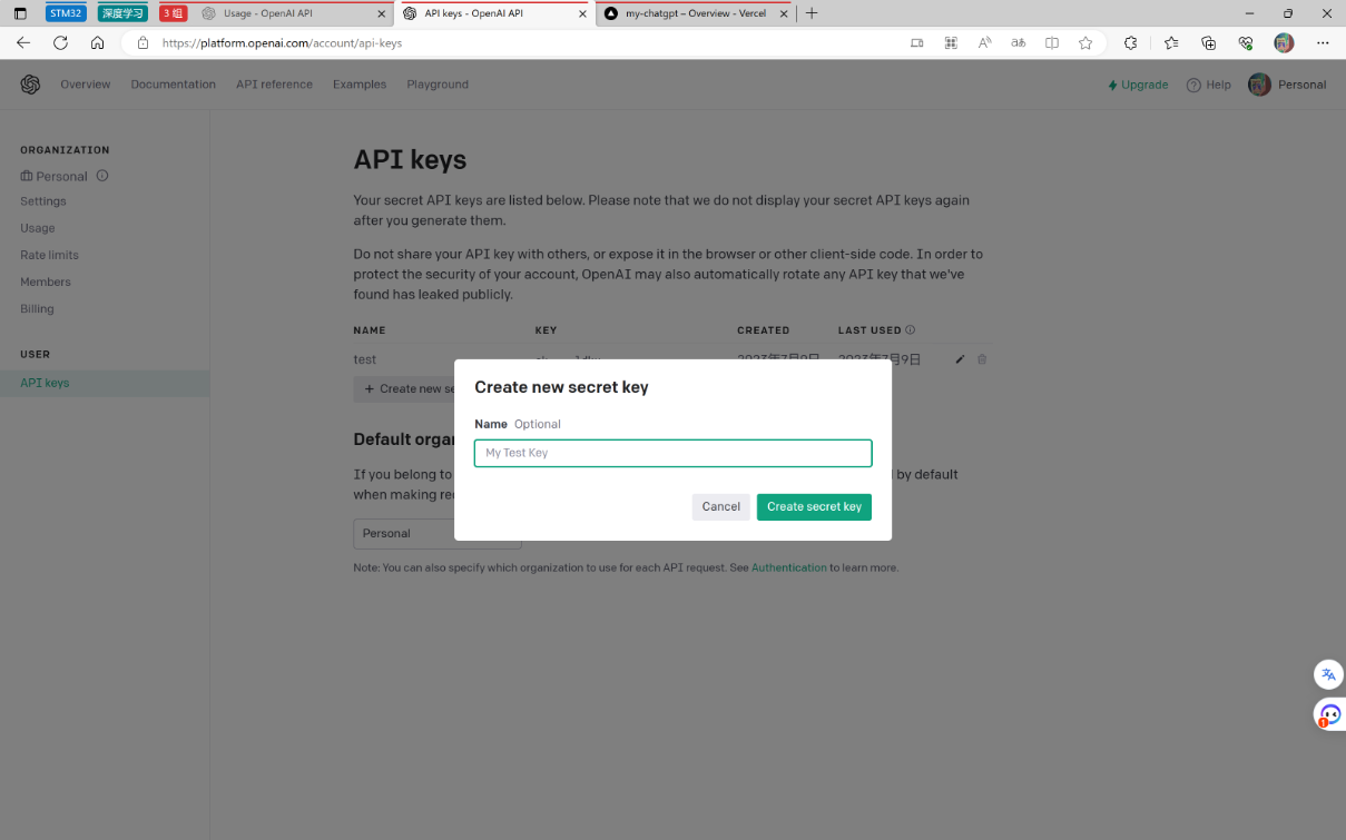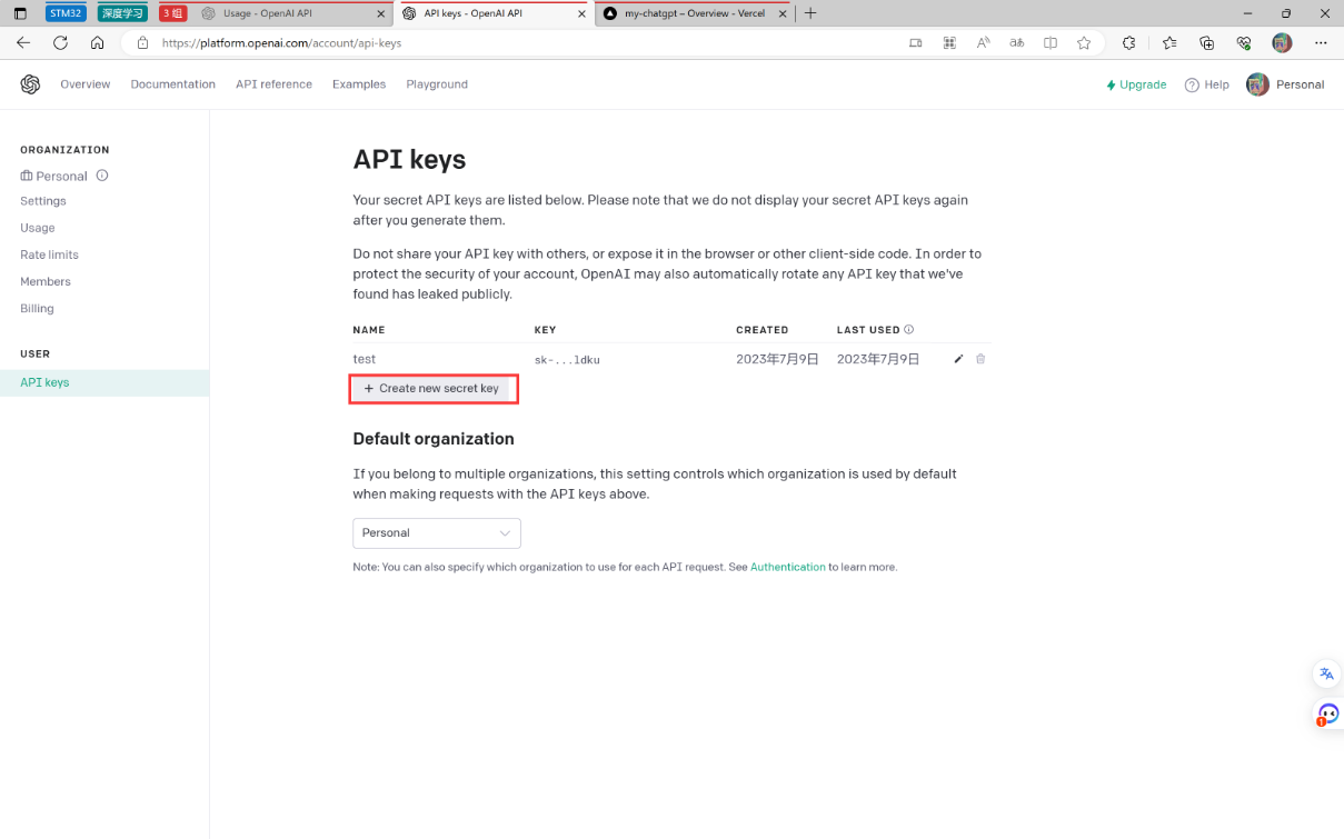 接下来需要去获取keys API keys
