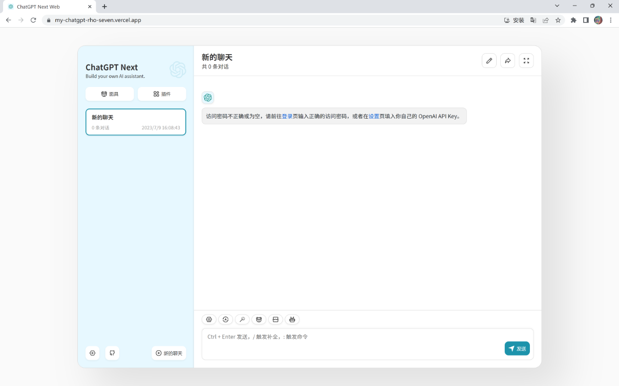 输入刚才设置的密码才能正常使用ChatGPT。