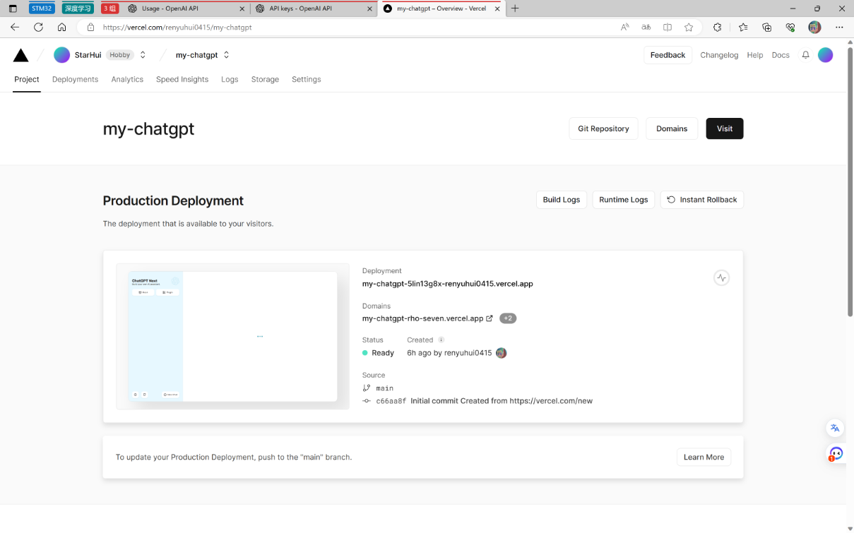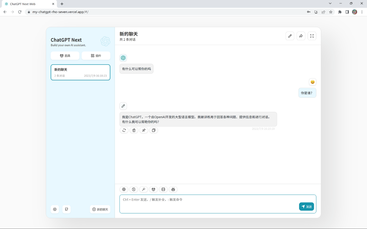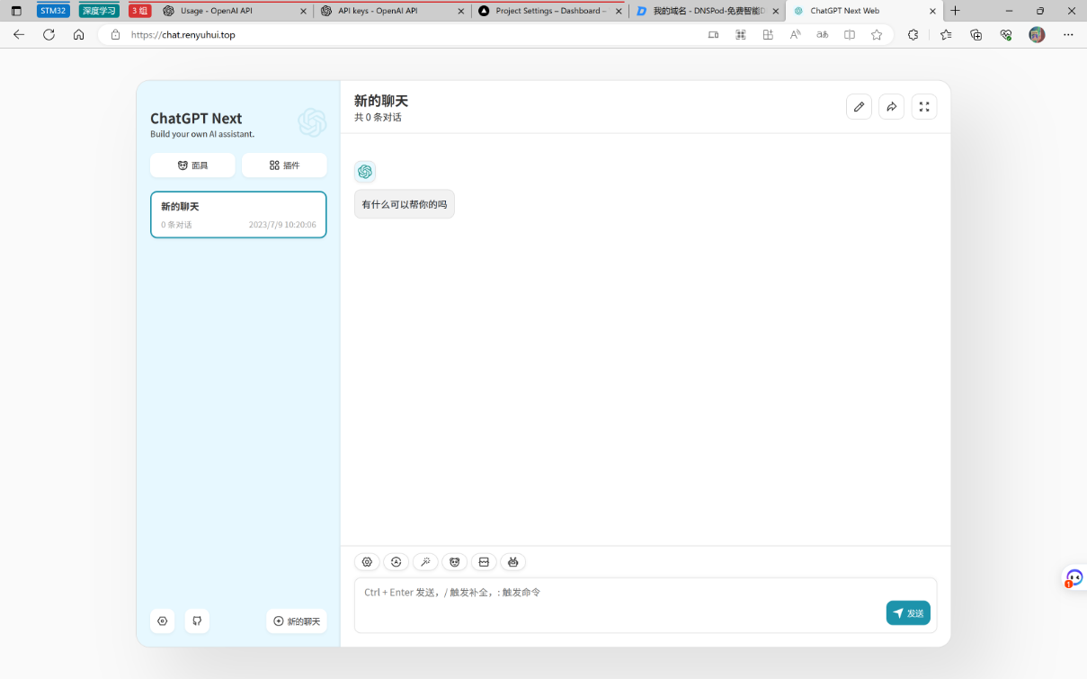 这样表明自己的ChatGPT网站搭建成功了,不用科学上网就能访问。