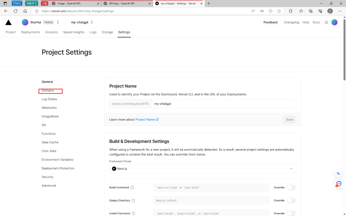注意:这里是使用vercel进行部署,是vercel代理,不需要自己有服务器,但是vercel提供的域名会被墙,需要绑定自己的域名。
