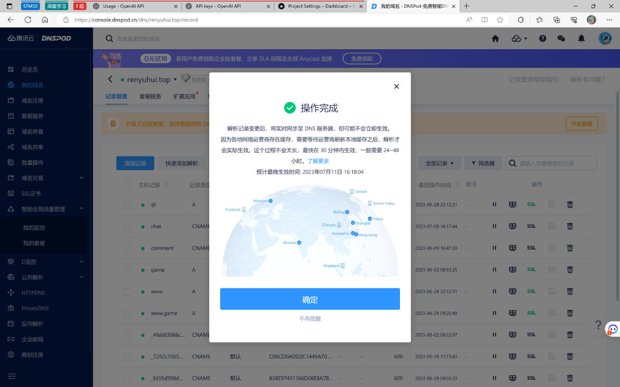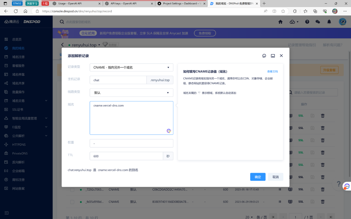 不用担心,去域名控制台配置一下即可 DnsPod
