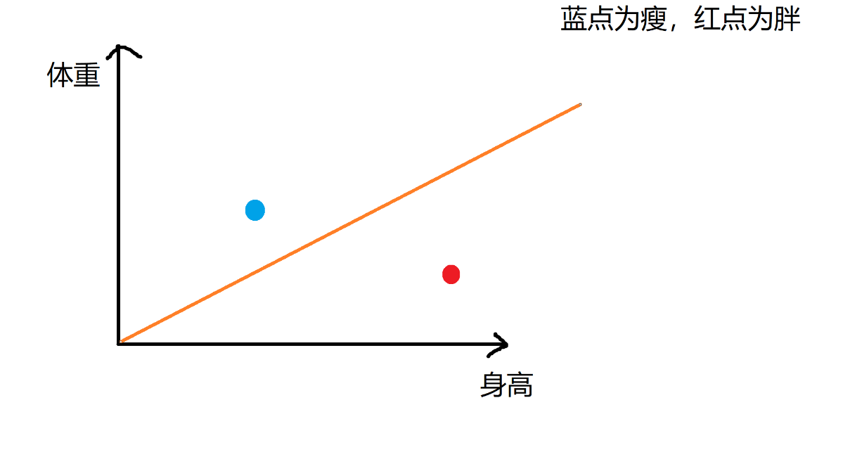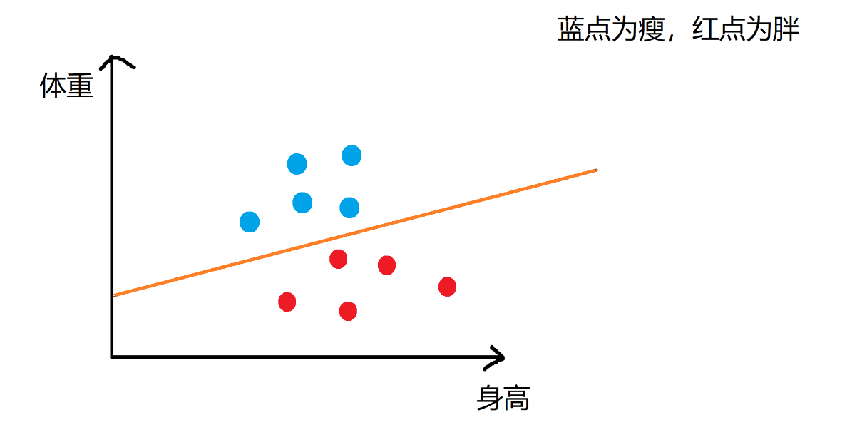 通过训练数据来不断更新直线的位置,使直线上面是瘦,下面为胖。