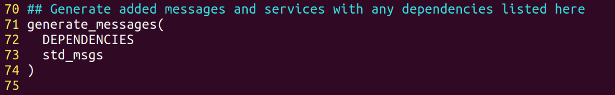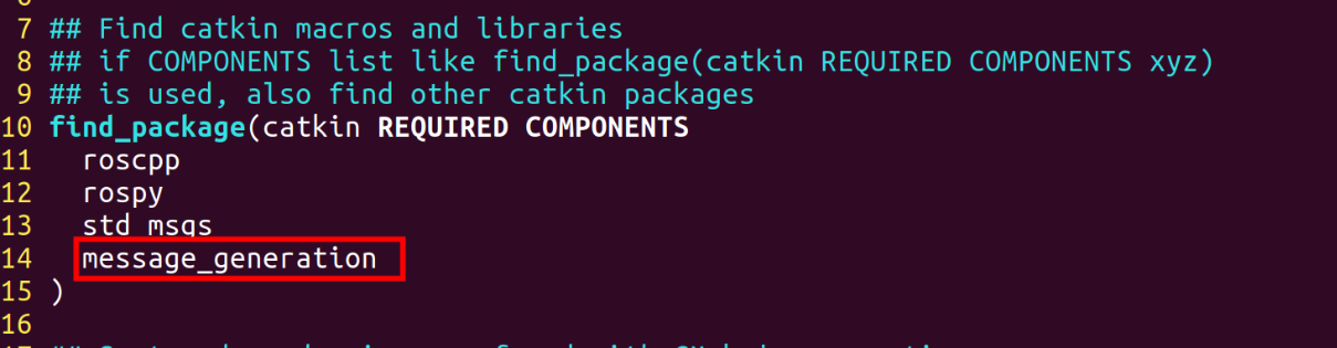 添加CMake编译时找到依赖的包 message_generation