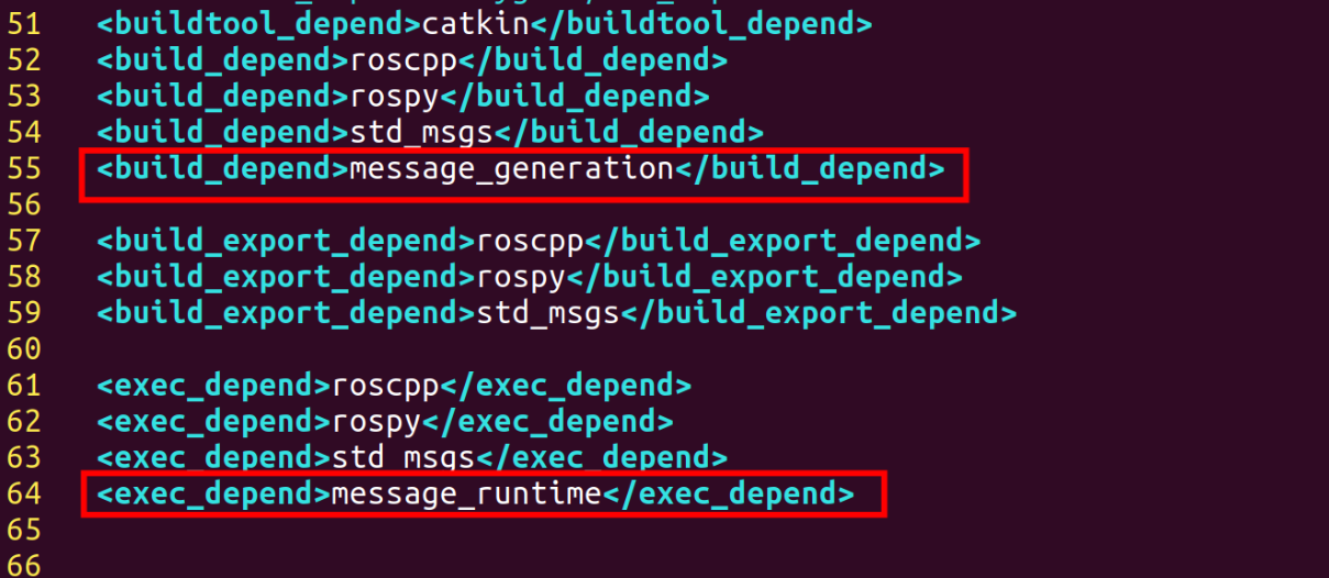 首先回到ROS包下,修改 package.xml文件内容,添加编译依赖项、执行依赖项