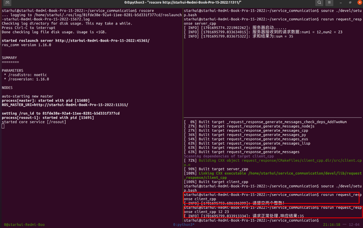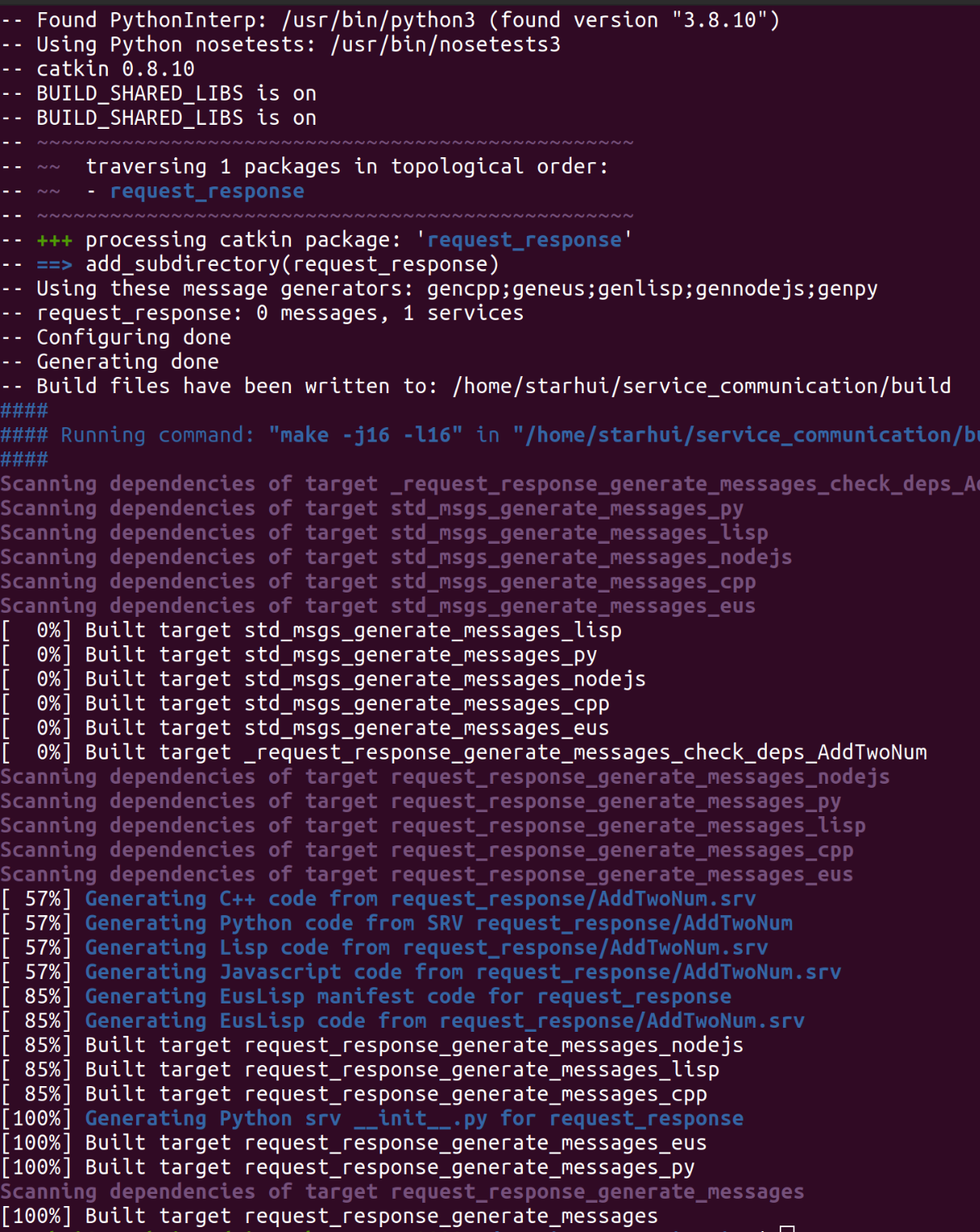 其中service_communication为工作空间名字,request_response为ROS包的名字。